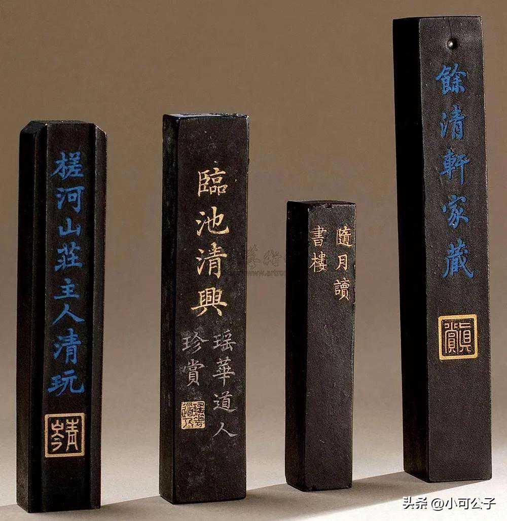 墨上的漆边也可作为不同时代的风尚,有助于我们对年代的鉴别。明代墨上下左右都漆边,正面背面为本色。清代多漆两面的边,两侧上下都不漆。