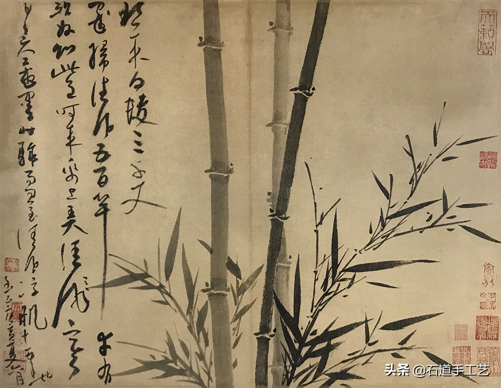 吴镇山水学巨然,为后世留下许多山水画名作,墨竹宗文同,俱臻妙品。这册为其子而画,诸态悉备,可谓墨竹画之集大成。每幅均见其识语,从中可领略吴镇书法之风采。