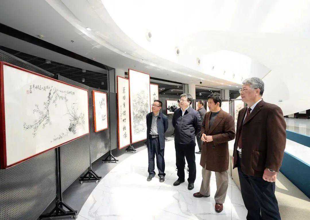 嘉宾及师生代表共同参观书画艺术展