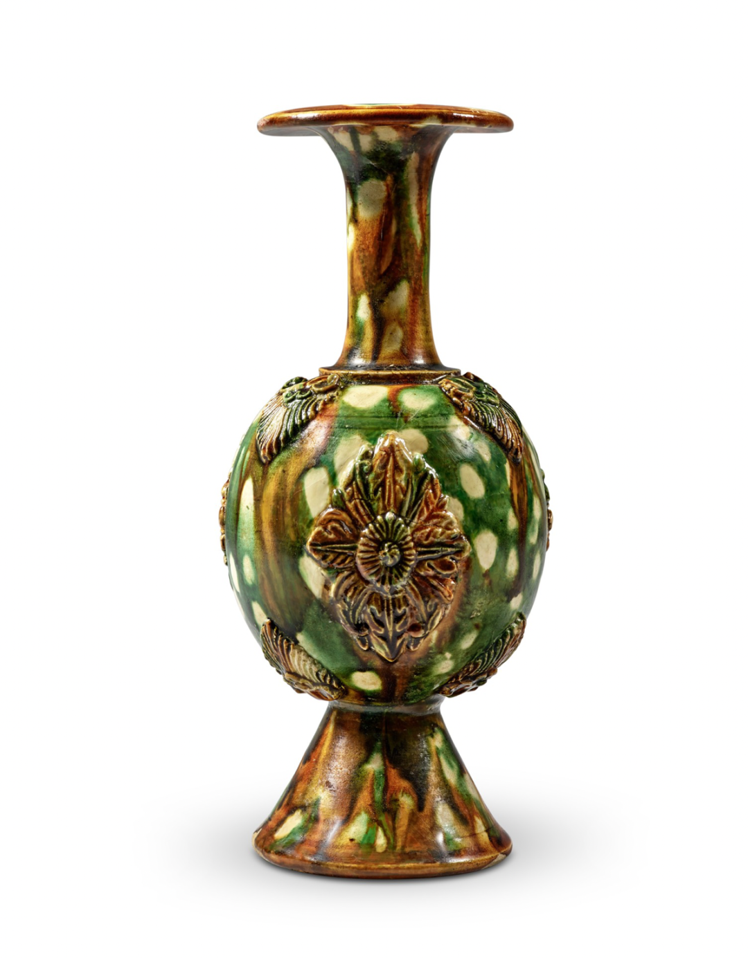 北宋龙泉窑青釉莲瓣纹五管瓶