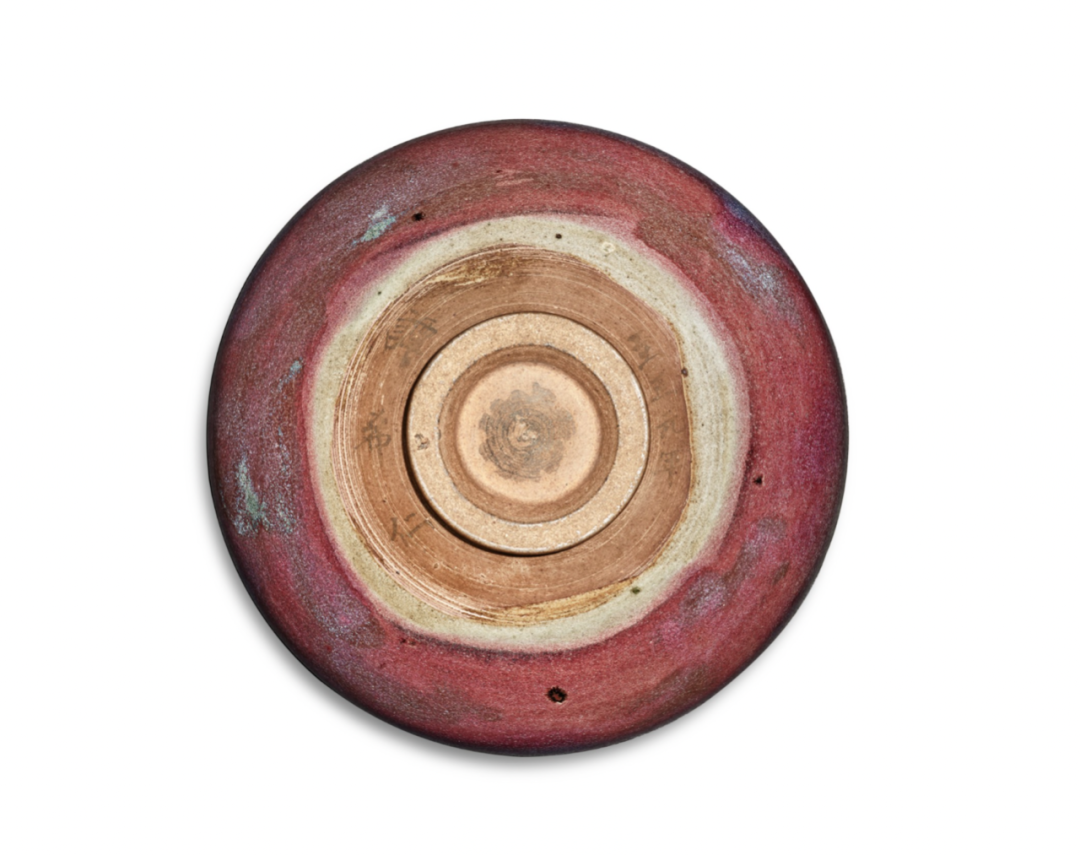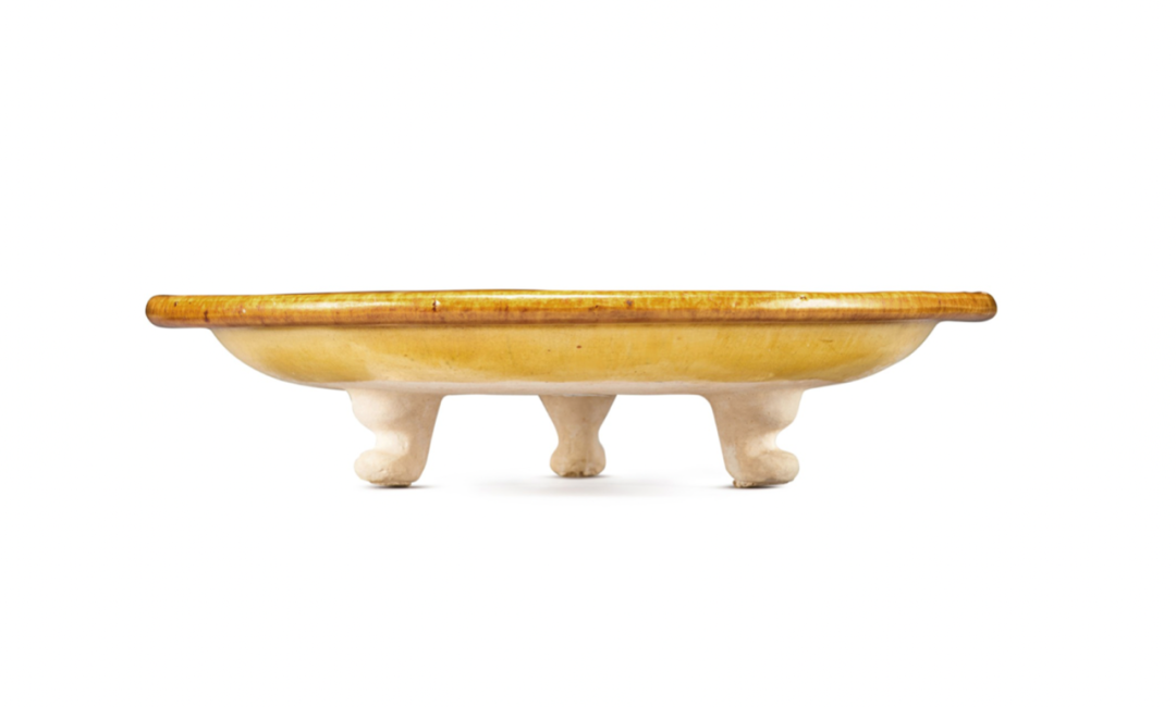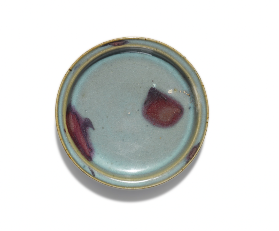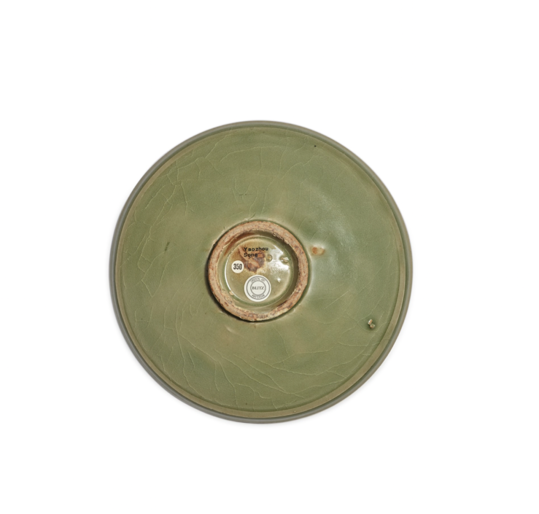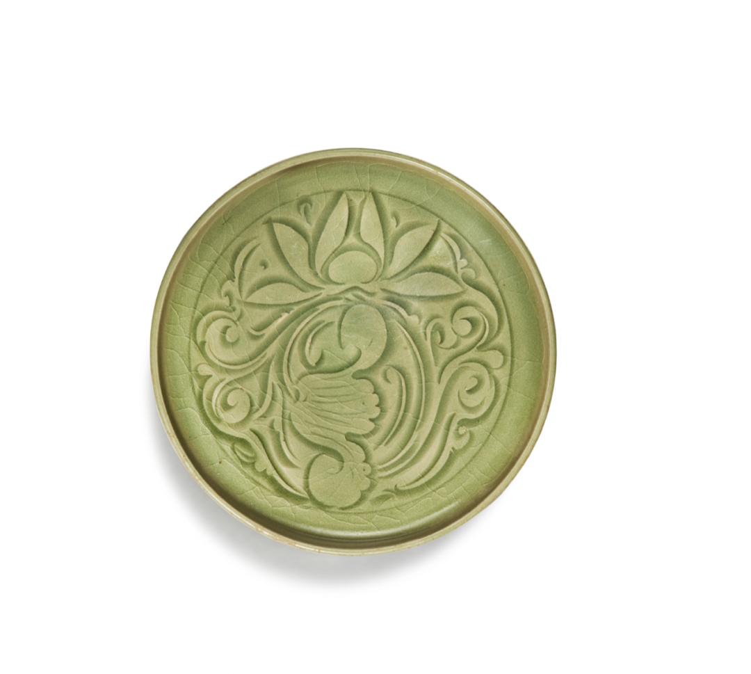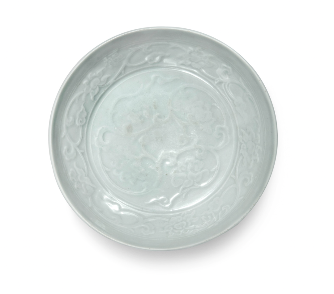 北宋/金定窑白釉印花佛狮戏绣球纹盘