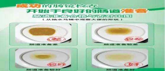 要告知患者肠镜检查的目的及过程,缓解患者的紧张情绪,让他们积极的配合。要详细告知患者术前3天的饮食准备。更要告知患者肠道泻药的服用方法,如何判断肠道准备是否良好(见图1)。有报导使用肠道准备APP能提高肠道息肉的检出率。