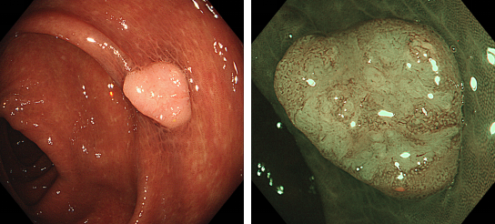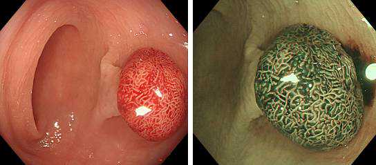 1.使用NBI观察时,肠镜头端应常规使用先端帽(Hood,见图18):先端帽有帮于靠近病灶、避免病灶出血、从而细致的观察病灶。尤其是使用放大NBI时,使用HOOD能获取高清晰的图像质量,以鉴别病灶的良恶性。