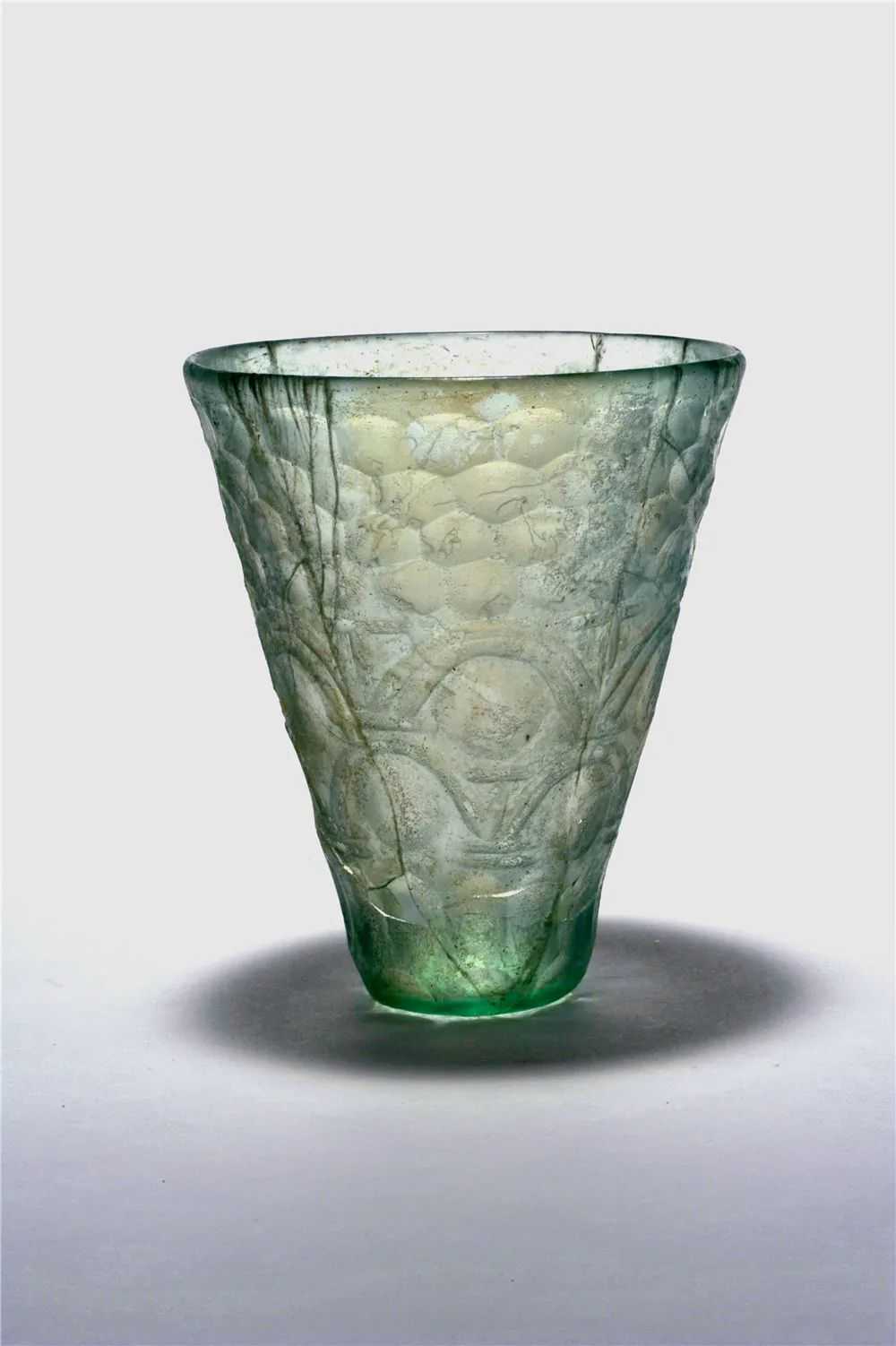 磨花玻璃杯,公元6—7世纪,伊朗