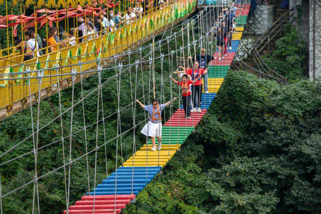 经险山平台乘坐洞口索道到达猿王洞(步行经观音崖约30分钟)。也可在此挑战玻璃桥、云中漫步等高空娱乐项目,体验感极佳。