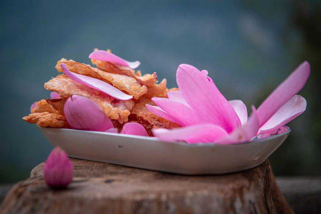 沿着游步道款步而去便能一路赏景看花,还能经过一条辛夷花长廊,很适合拍照打卡,沿途也有美食补给站,可品尝特色美食油炸辛夷花或是一些小吃补充体力。