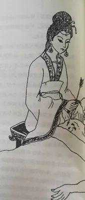 将军忙唤来女儿湖兰给太子治疗。湖兰用一个药丸在箭伤处擦了擦后,用一把小刀剥开皮肉轻轻取出箭镞,在伤口上敷了层草药。