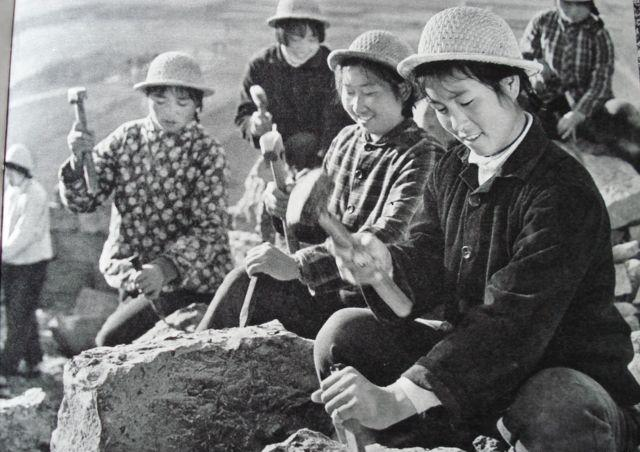 60年代,河南省林县(今林州市)修建红旗渠的修渠工们