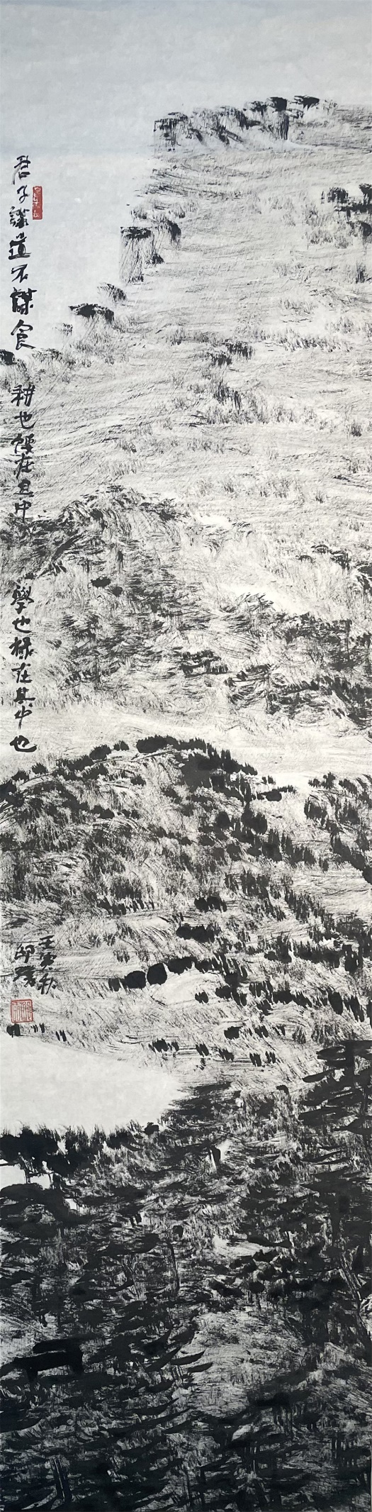 原本在笔墨的痕迹中,笔锋只为其中一个极小的分支。在金石的基础上,经由魏晋王羲之等大家的推动,俨然用笔的一切,此其局部突破后又反手统御全局之一例。于今线阵灰作为笔法的一个分支,已然实现局部的突破,接下来能否循笔锋旧例,反手统御笔法的全局?