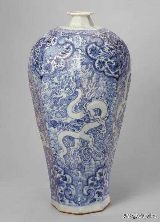 元代青花海水白龙纹八方梅瓶故宫博物院藏