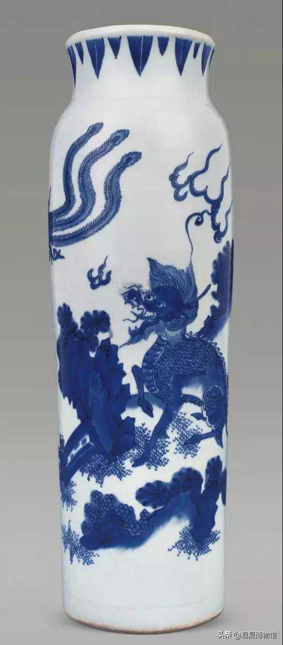 明崇祯青花麒麟引凤纹筒瓶北京匡时拍卖
