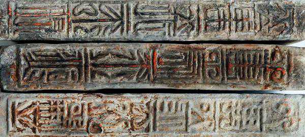 制陶或是建筑工匠也会在砖面上留下记号,最早见于西汉,包括尺寸、数目、方位等。