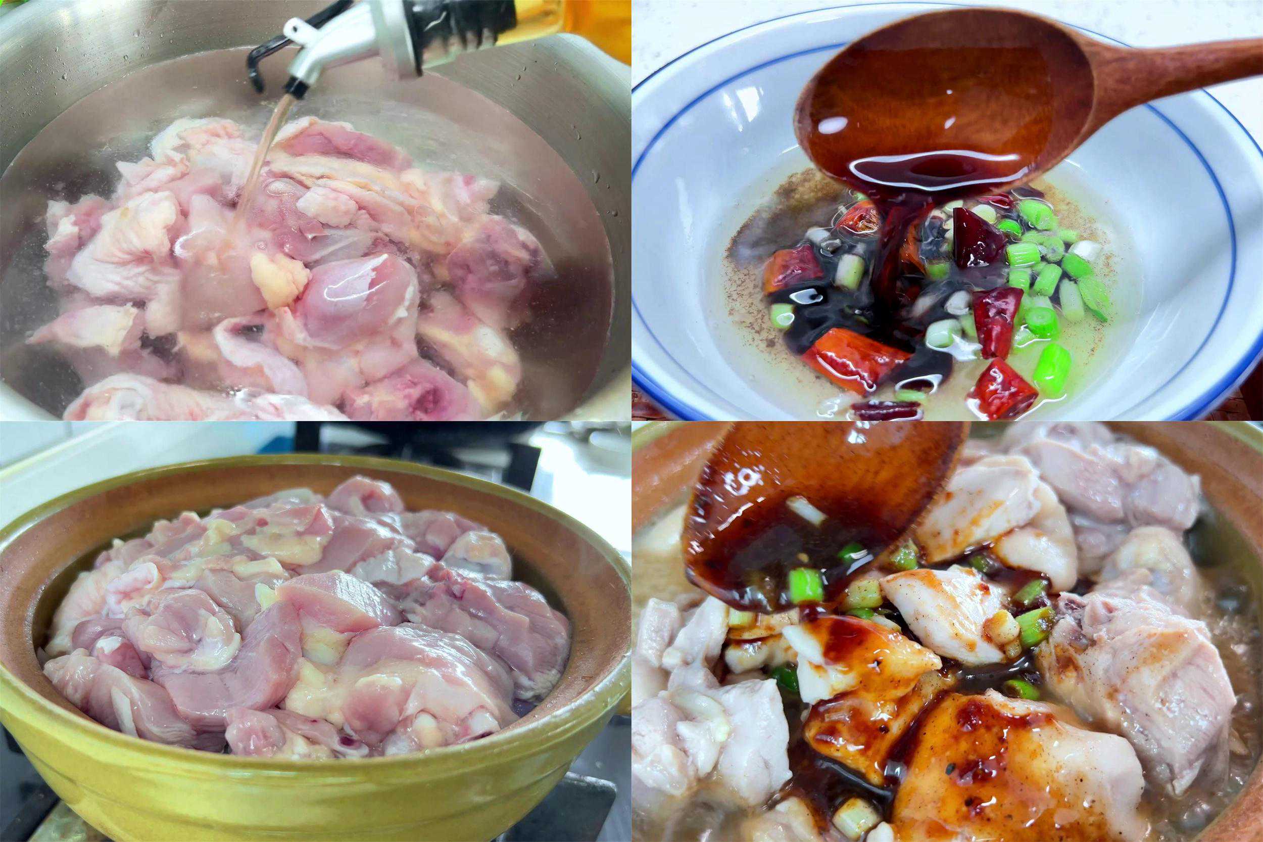 1、鸡肉尽量选择土鸡、柴鸡,不要用肉鸡,斩成块后冲洗干净,浸泡20分钟出血水去腥。