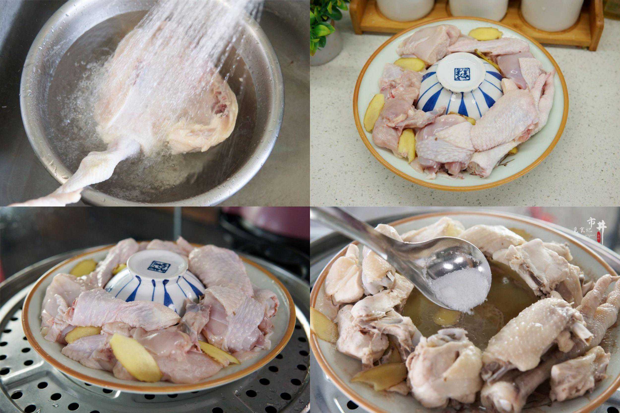 三、【无水浓鸡汤】食材:半只鸡、姜1块、盐和鸡精。