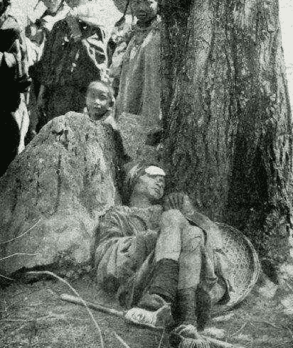 举家讨饭的三口之家,衣服破烂不堪,中间的孩子更是骨瘦如柴