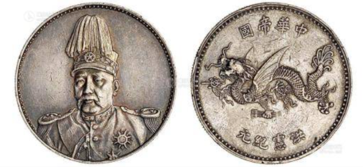 银币的规格为库平七钱二分,成色高,含银量为90%。袁世凯接受帝位后,开始大肆封官赐爵,改总统府为新华宫,准备于1916年元旦正式登基。没曾想他共做了83天没有正式登基的皇帝梦,于两个多月后的1916年6月6日病死,洪宪飞龙银币即停止铸制发行。