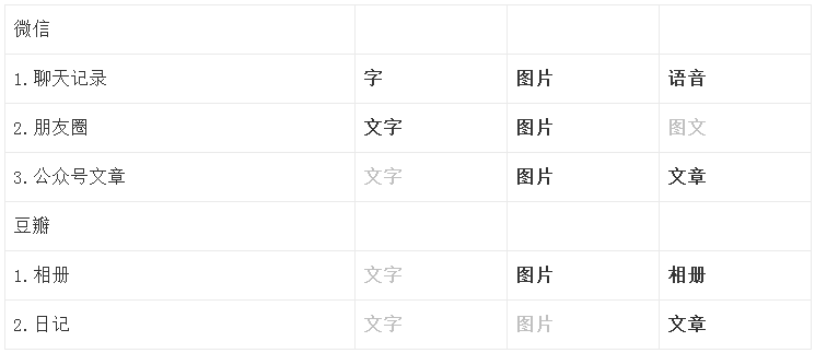 下面对比“微信”和“豆瓣”对收藏信息的“最小单位”的问题上的处理方式:
