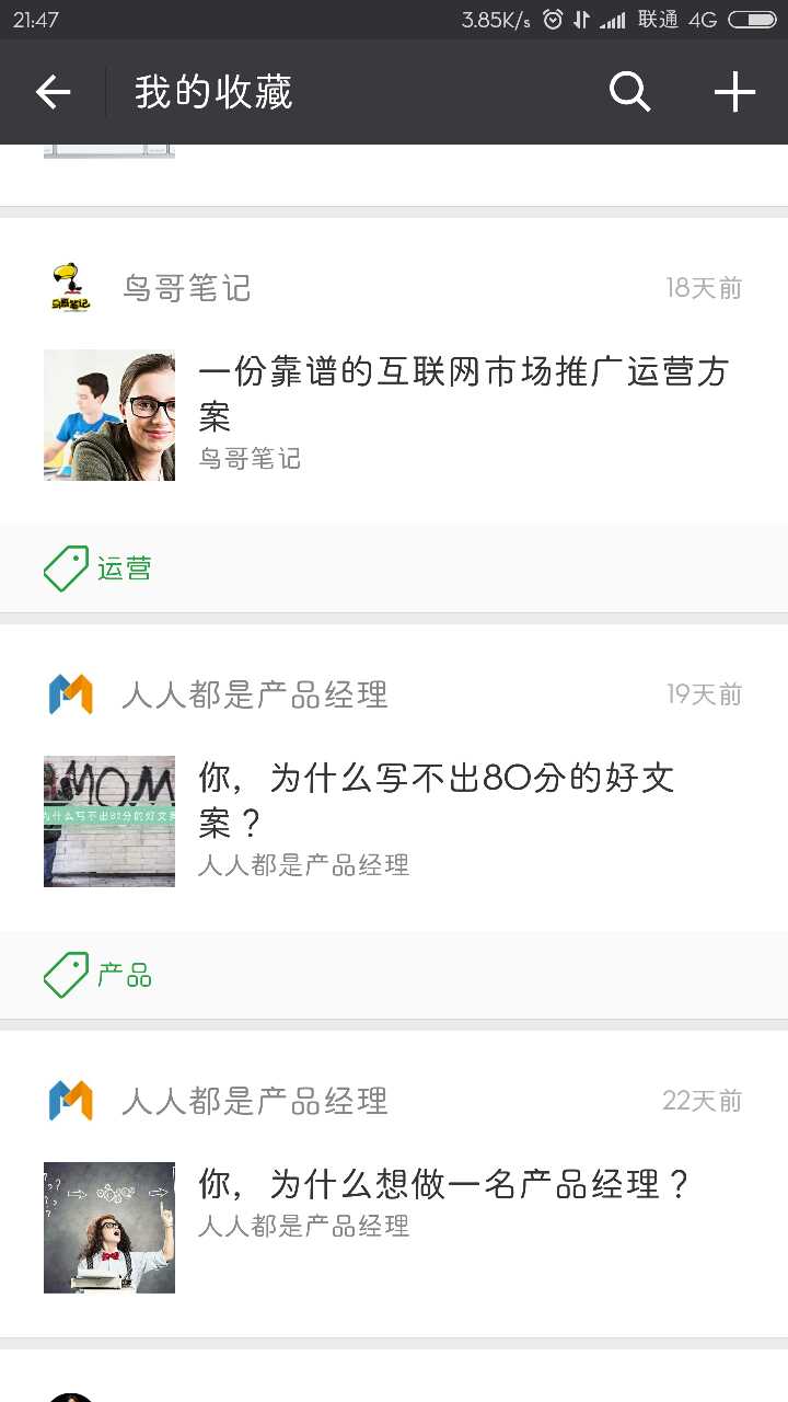 豆瓣的这种处理方式基于豆瓣的用户们是比较集中的文艺青年型用户,用心创作。所以,也许微信公众号的文章应该作为一个“最小单位”来收藏,毕竟相当一部分微信公众号的文章都是非常不错的原创。至于朋友圈中,文字和图片是否可以单独收藏,或是将整条朋友圈作为“最小单位”?想到朋友经常吐槽的“盗图”,这个问题也是比较有意思的。