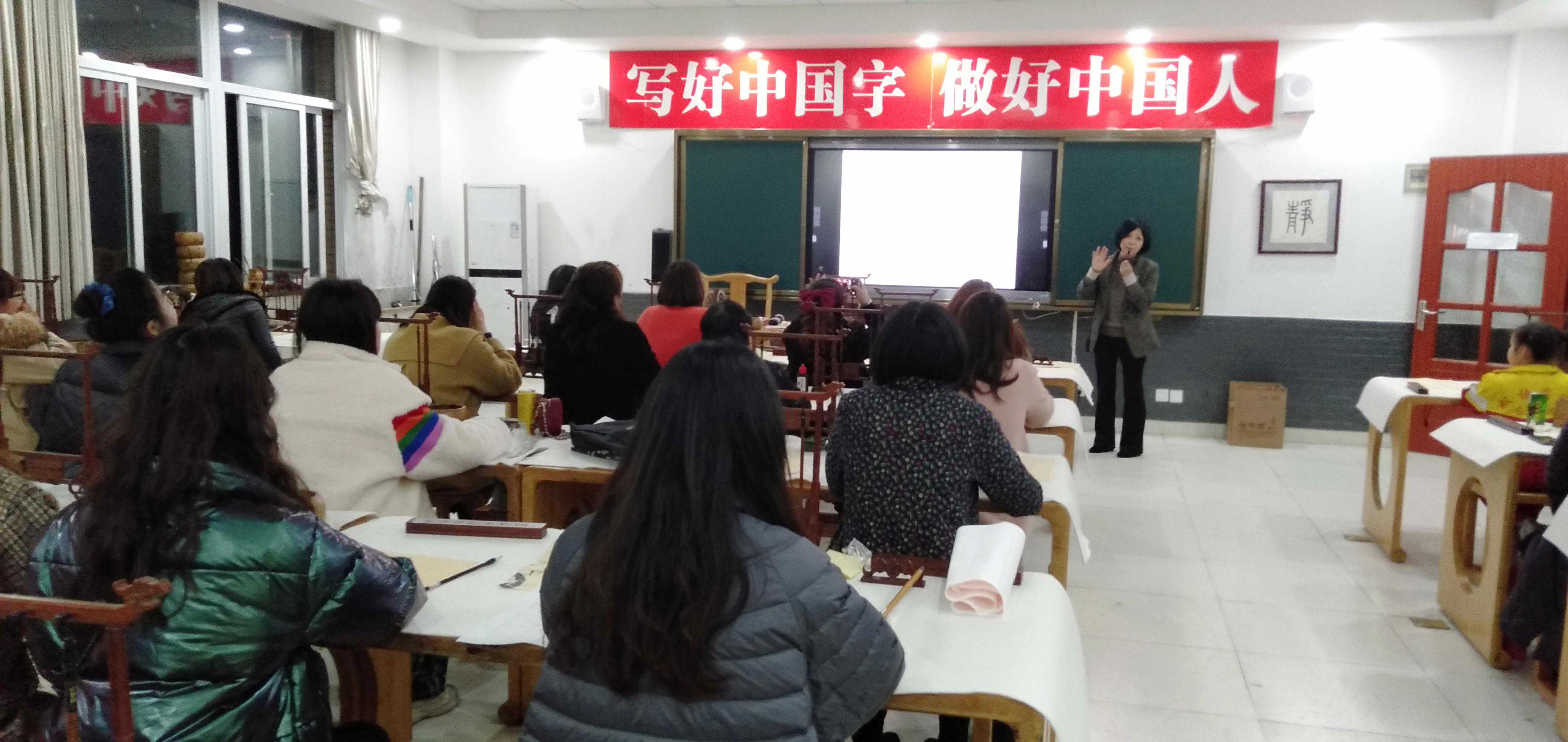 在去年年底,学校工会面向全体教师征集第一届第四次教代会提案,其中就有不少是关于建议学校开展书法教师培训的内容,因此,开设书法教师培训班既是加强学校师资队伍建设之举,也是回应广大教师的呼声。寒假期间,教务处在学校工作群中通知教师自愿报名,共有八十多位老师主动报名学习。本学期开学第二周的周五晚上,培训班就开始了第一次授课,老师们都提前准备了毛笔等学习用具,卸下一周教学工作的疲惫,坐下来静心习字,陶冶情操、提升技能。