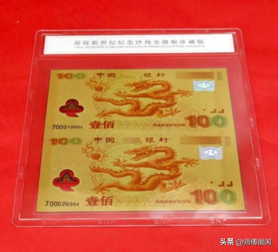 在钱币收藏圈中,各种收藏品的价值差异很大。有些藏品具有极高的收藏价值,而有些则毫无价值。对于这位藏友展示的迎接新世纪纪念钞纪念金,有经验的收藏家一眼就能看出,它仿的是2000年发行的世纪龙钞,市场上也称其为大龙钞。这种品种的纪念钞实际上衍生出了许多所谓的金钞银钞,但它们的含金或含银量极低,甚至有些根本不含真金白银,只是一张小塑料片。