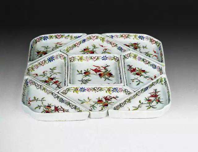 民国时期著名的瓷器鉴赏家、收藏家许之衡,在其所著的《饮流斋说瓷》中赞叹说:“果盒亦为攒盒,乃盒数个,盘格星罗棋布于中,略似七巧之板,而置种种食品与其内也。”