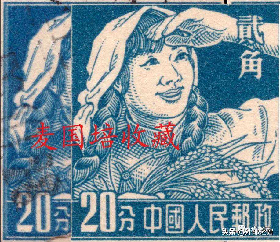 在这套邮票中,意外地发现20分有复印变体,产生原因大体就是印刷时印版震动了一下,导致邮票呈现重影的状态。邮票复印是重要变体,而且在任何一套邮票中都属少见或罕见,在普8中更属难得,成为衡量普8题材水平高低的重要标杠。