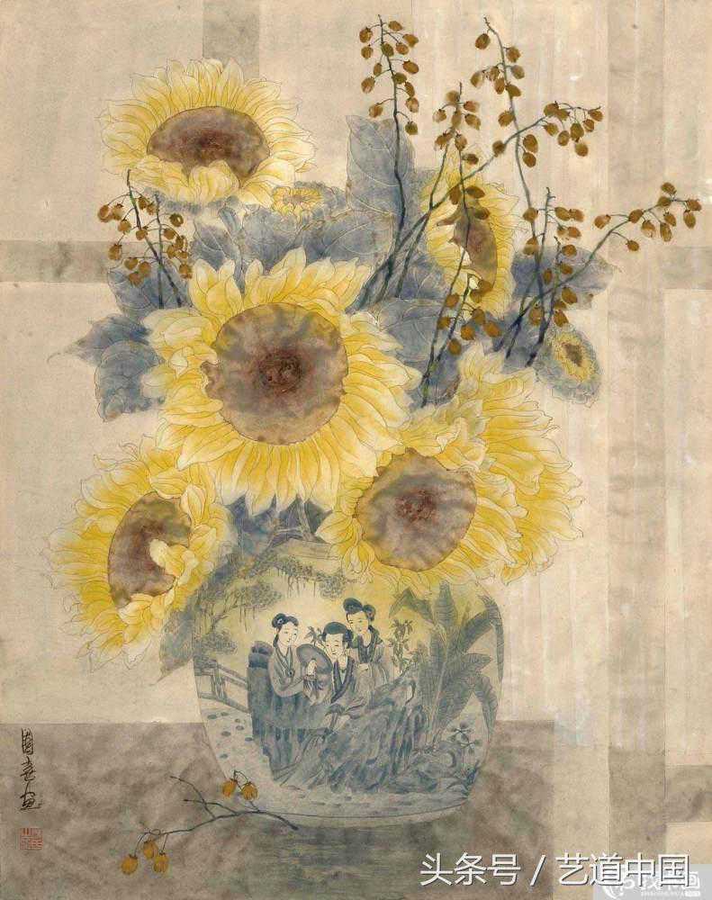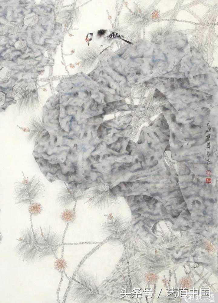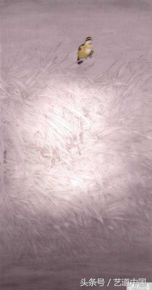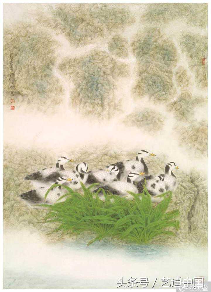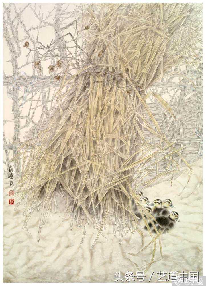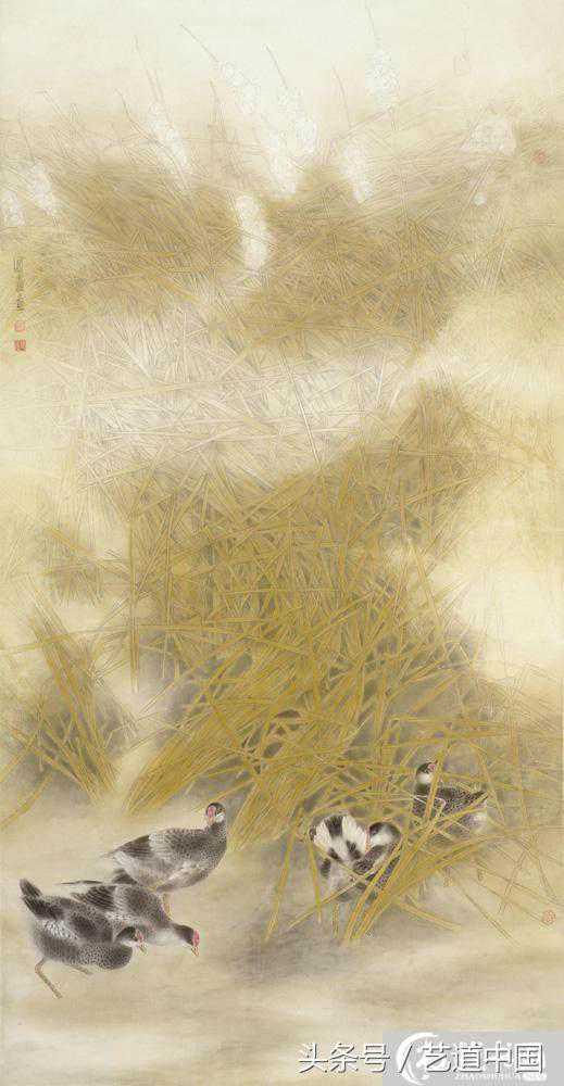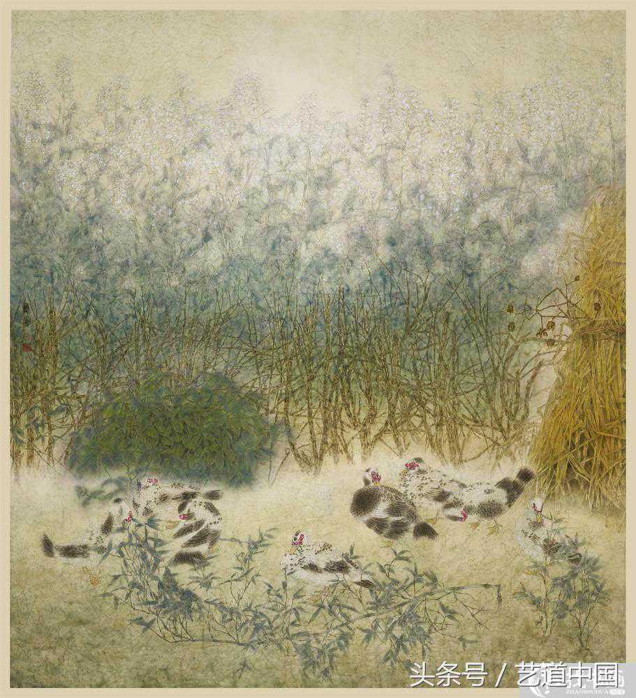 涂国喜的画作,吸收的最多的宋画精粹,骨子里有一种用文人画的雍容华贵气息。纵使画面的主角往往是乡村,野花,家禽等等充满生活气息的东西,但是还是有一种野趣雅致的淡然质感。乡村的一草一木,在他的笔下都能散发出浓泽的诗意情怀。