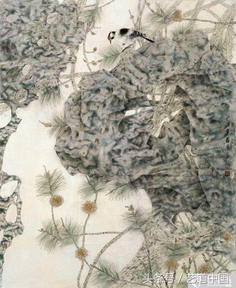 涂国喜对石色情有独钟,常用石青、石绿、珠砂、白粉甚至用金、用银来调剂画面,大胆突破而又无所顾忌。使得画面中一派生机勃勃,从画面窥见了一个漫烂多姿的乡野世界。