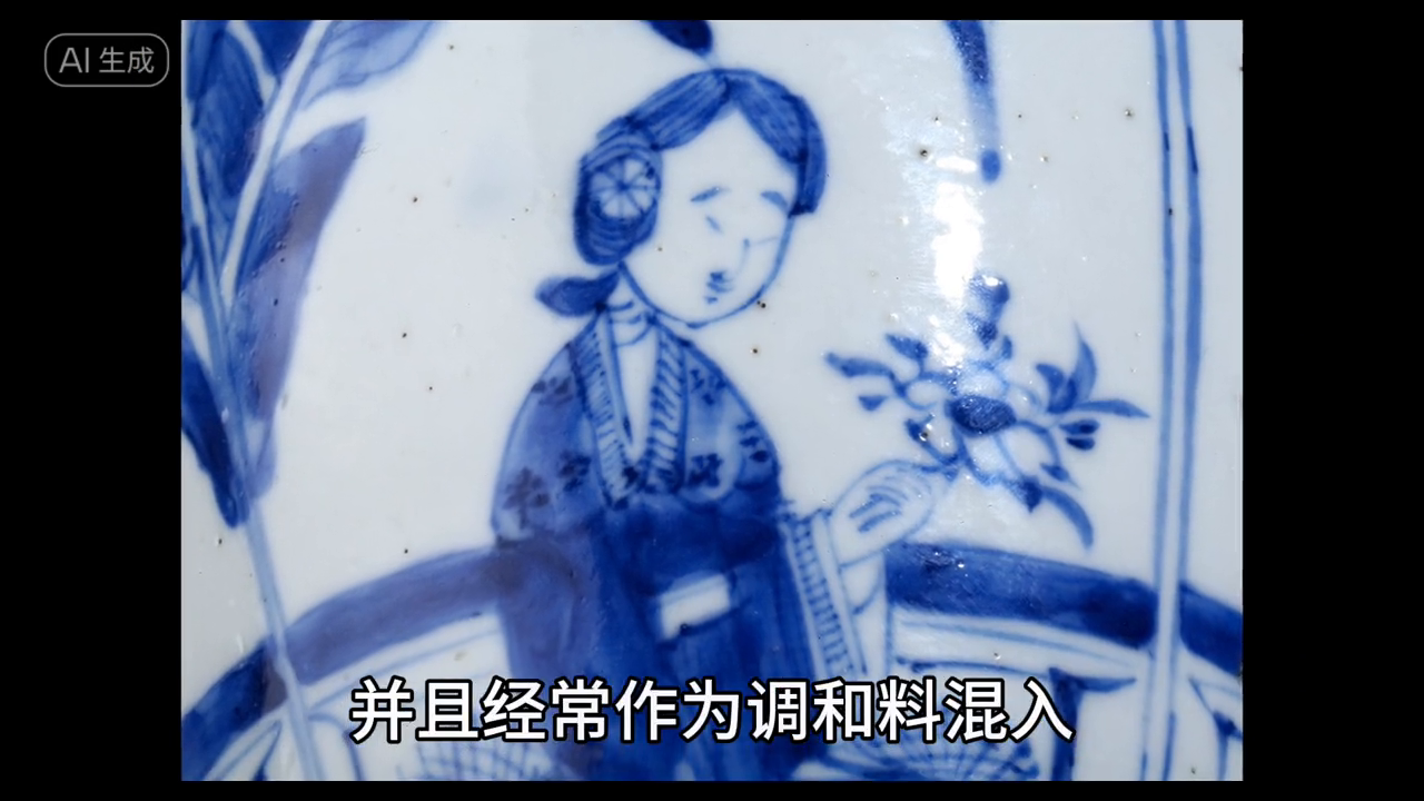 ·石子青因为它是使用时间最长的一种青料,从元代到民国从未间断过,可以说是贯穿了整个青花史,并且经常作为调和料混入到其他的那些青花料当中。石子青发色比较灰暗,多见灰黑色,其产地非常多,江西的土青料就是其中的一种。