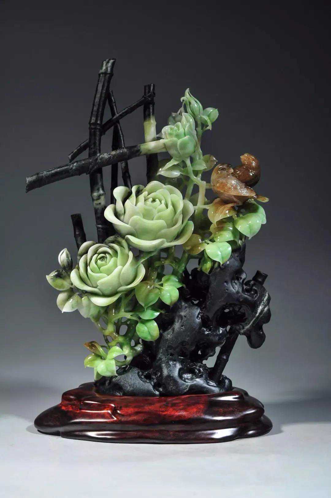 独山玉颜色多,雕刻好的作品更是非常惊艳。和田玉飞速发展这么多年,以其玉质温润、体量大等优点名列四大名玉之首,也是名副其实。但独玉的魅力不容小觑,只要把名声搞起来,相信也是前途无量的!
