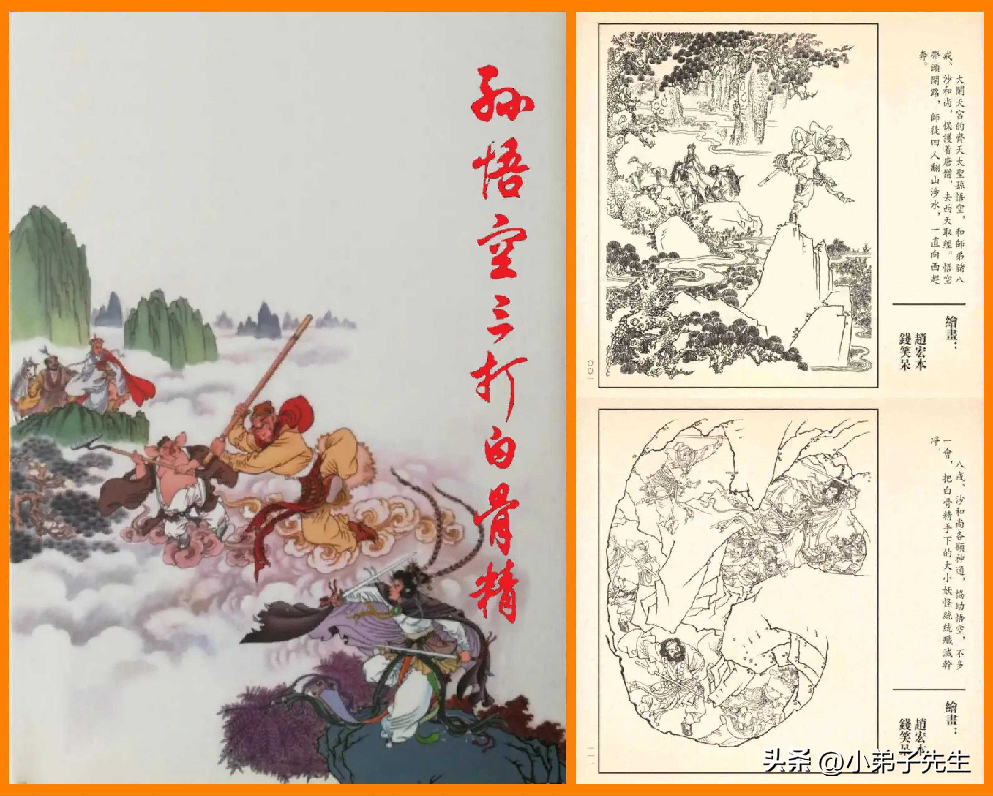 《三打白骨精》与《大闹天宫》是艺术家们最乐于表现的西游题材,连环画《孙悟空三打白骨精》由原著中第27、31、34回及其他章节的精华部分“拼凑”而成,因为搭配绝妙,衔接自然,所以比原著更加跌宕起伏,引人入胜,据说剧情后被许多影视作品反复引用借鉴,这就足可证明编剧的成功。