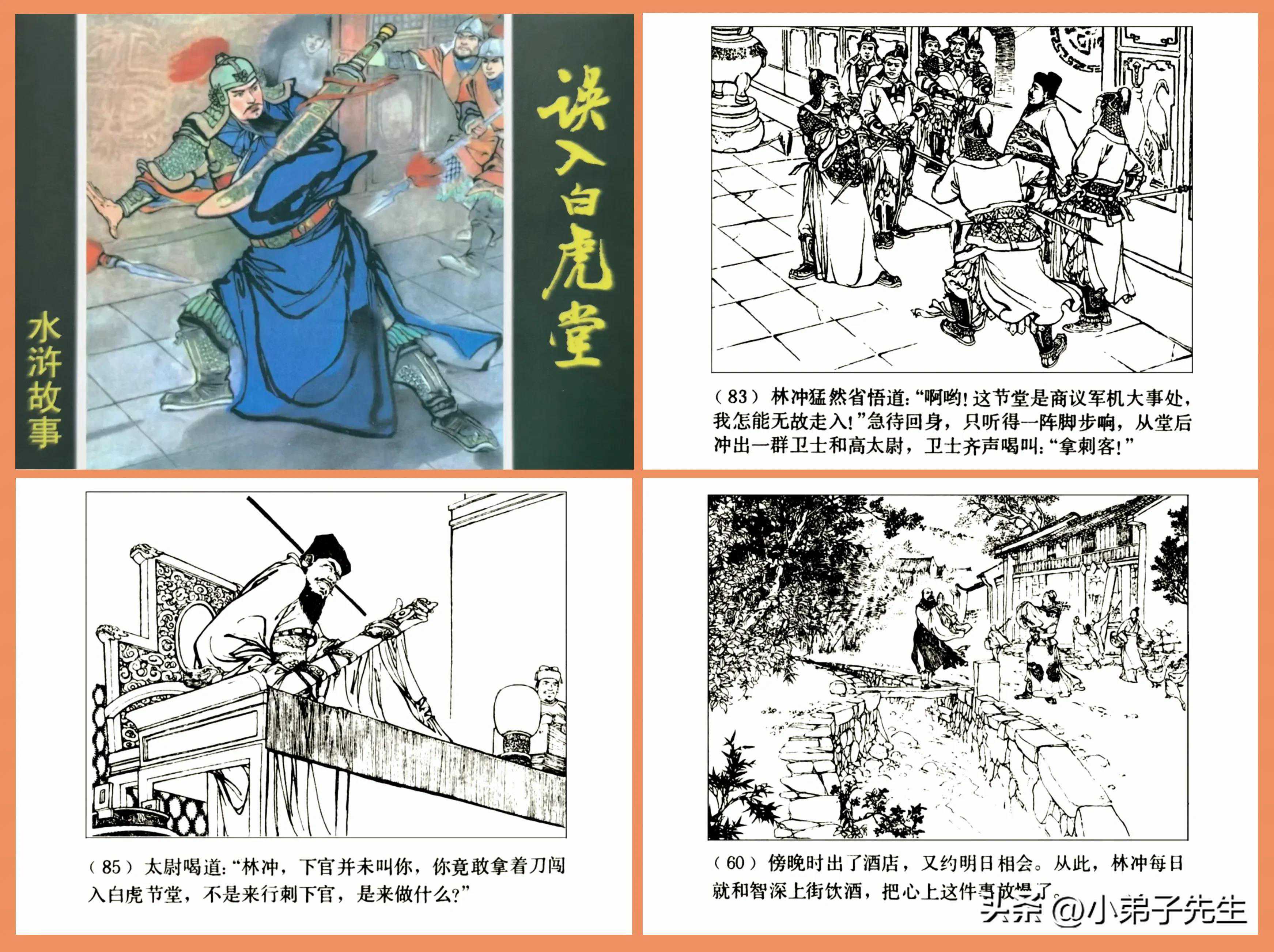 颜梅华创作的《误入白虎堂》《智取生辰纲》《杨志卖刀》等几本《水浒故事》连环画,绘画风格差异很大,艺术成就参差不齐,尤以《误入白虎堂》成就最高,即是与刘继卣等大家手笔相媲也毫不逊色。