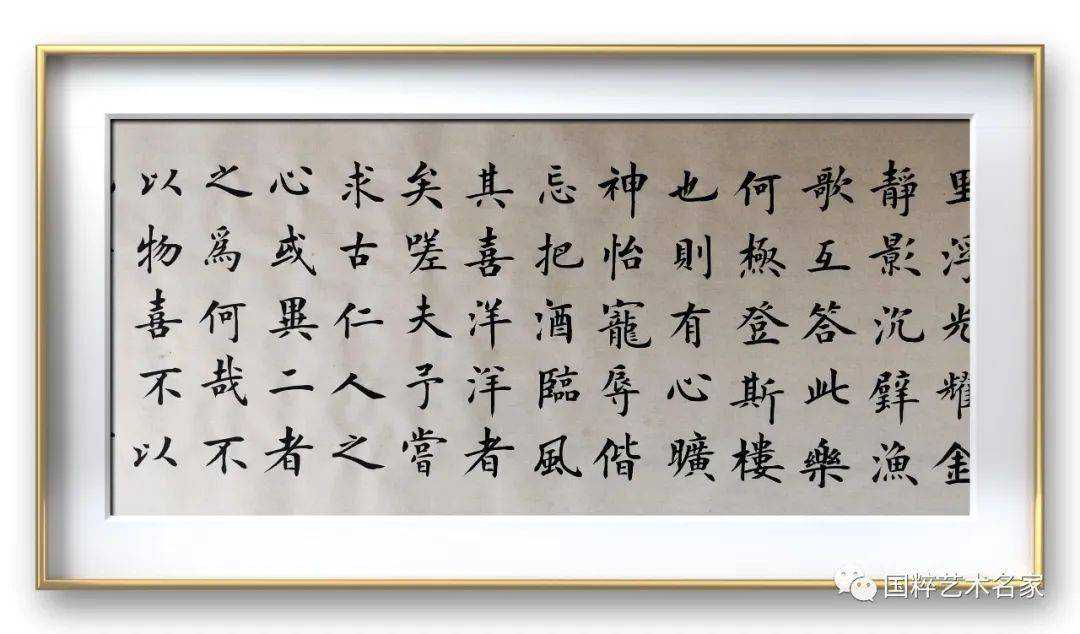 书法的实力之说,先莫作他论,不妨先看韩耀河先生楷书质量。楷法无欺,立见高低。先生修楷书之法,以碑立骨,以帖成韵,落笔钧直,力透纸背,点画精妙,非作算子。所以上下非方整,左右非齐平,方不中矩,圆不中规,带着写行书的信念写楷书,不作印刷体的呆板,浑然一体写生动。他的楷书取法欧赵,师追魏晋,畅意险绝;又参意颜筋柳骨,博取诸家之长,自立面目,多骨而微肉。本为巧,却示拙,复归平正质朴,雅俗共赏,这样的书法正是楷法的正脉主流。