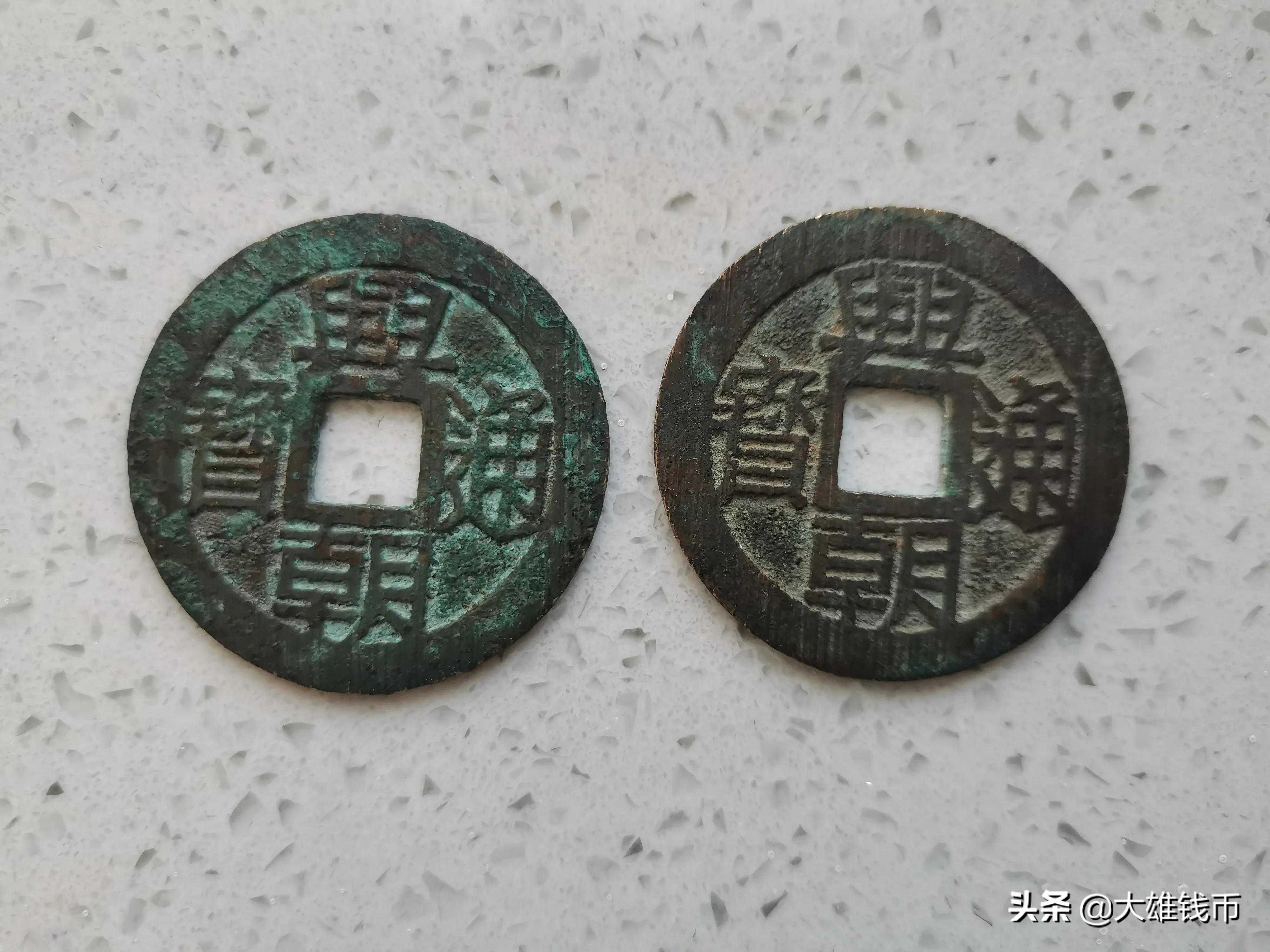 古钱币收藏有两种,一种是传世币,一种是发掘币,发掘币是作为陪葬品入土后才被发掘出来,虽然没有经过大量的市面流通和人手辗转,但因为埋藏在地下太长时间,铜钱被氧化而发绿,和传世币还是有比较大的区别的。