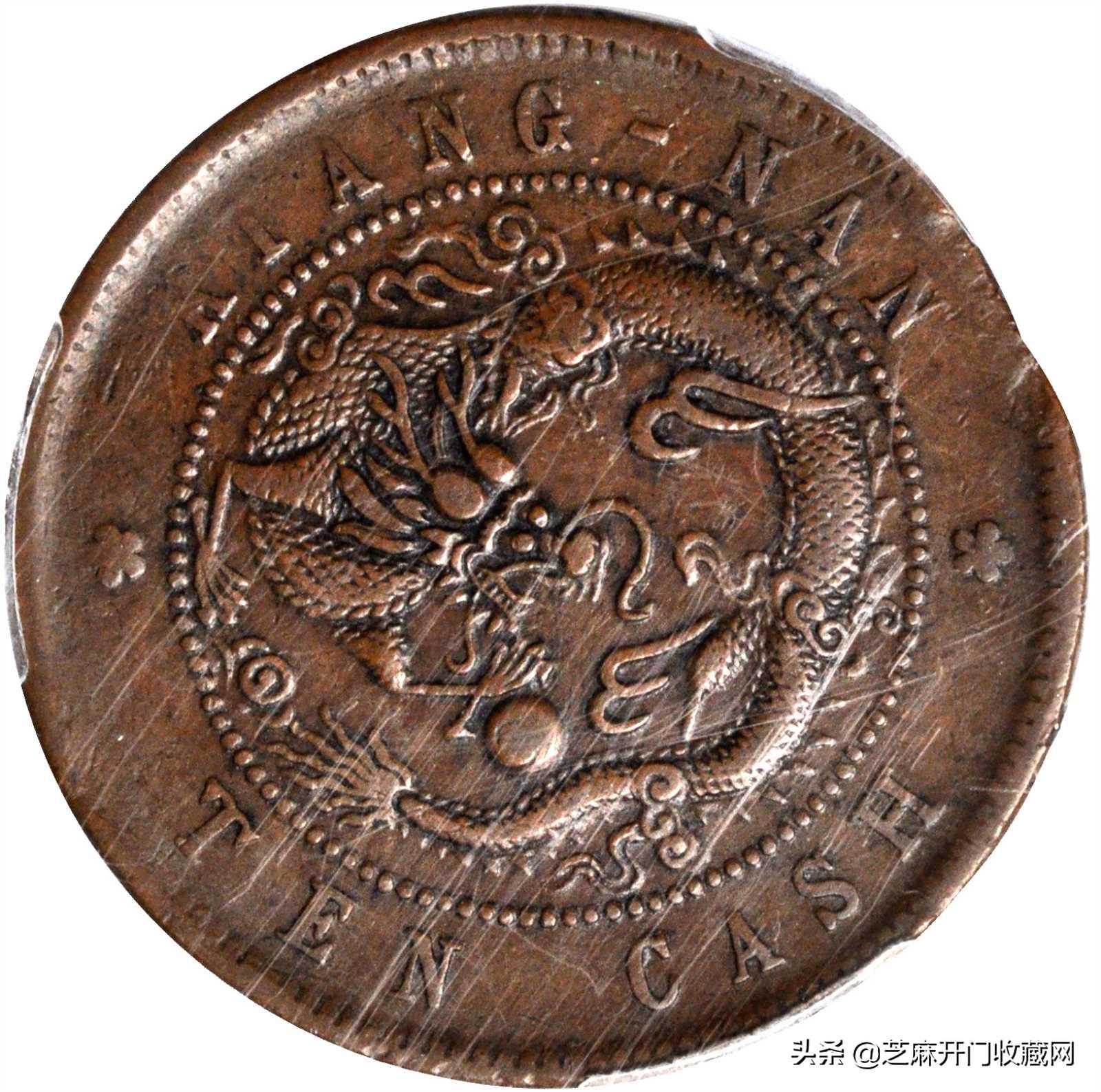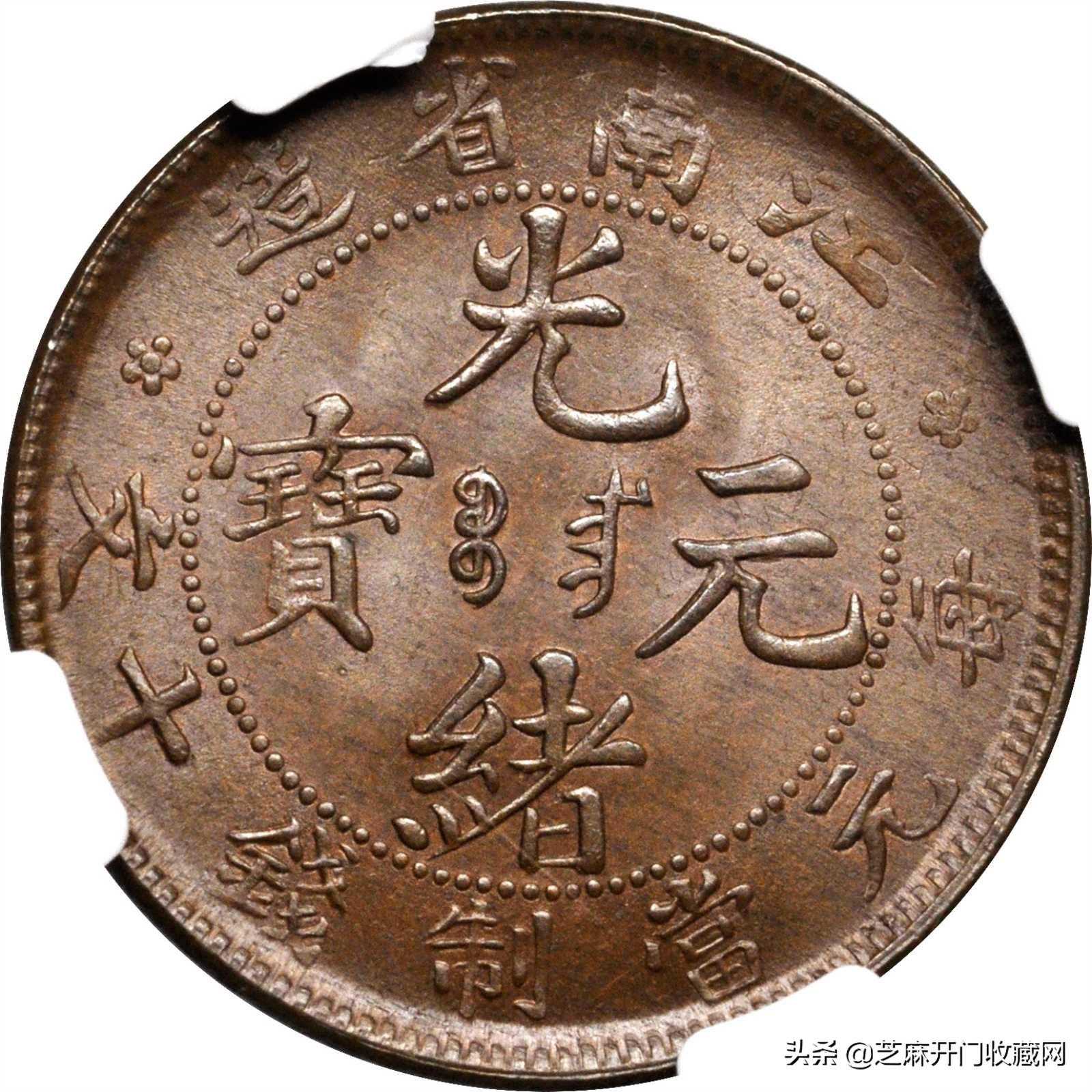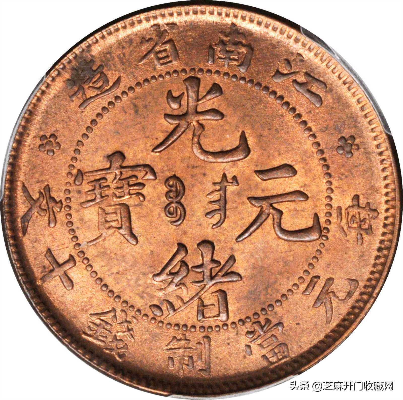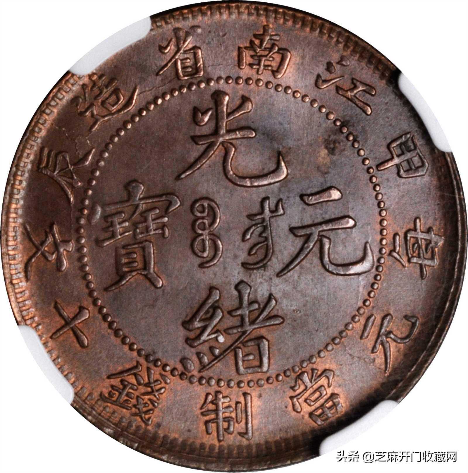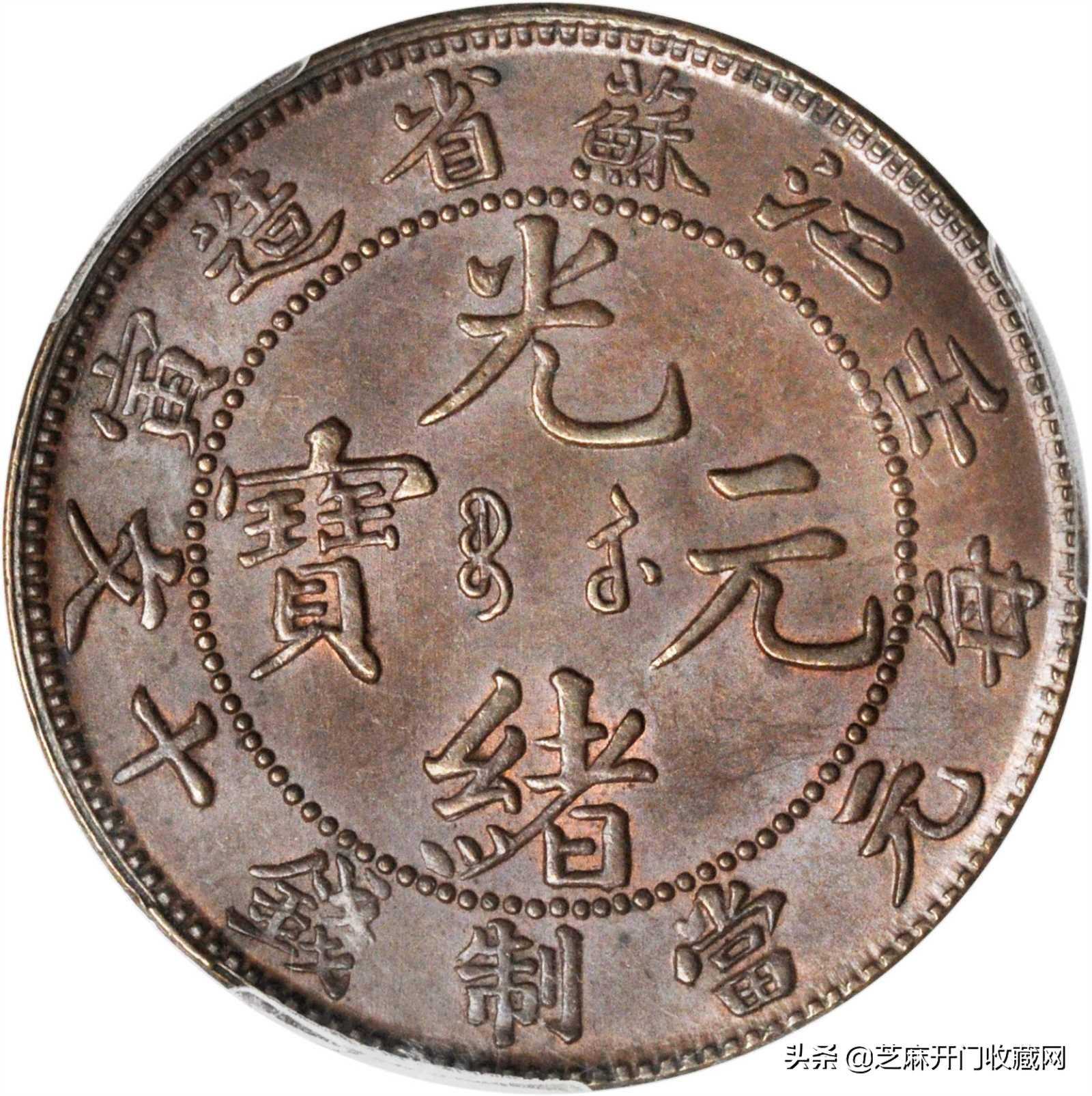光绪元宝江南省造十文铜钱出手价能高达上百万,主要因为它存世量稀少,因此极其珍贵。光绪元宝版型铸造极其规整,设计风格优雅而具有满汉文化融合的特色.