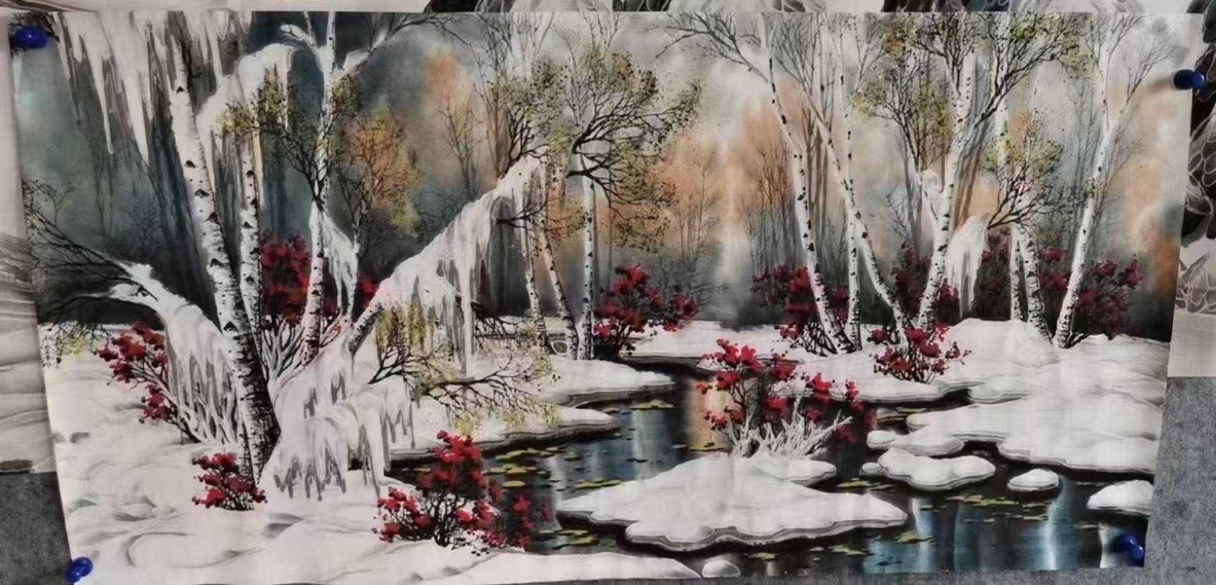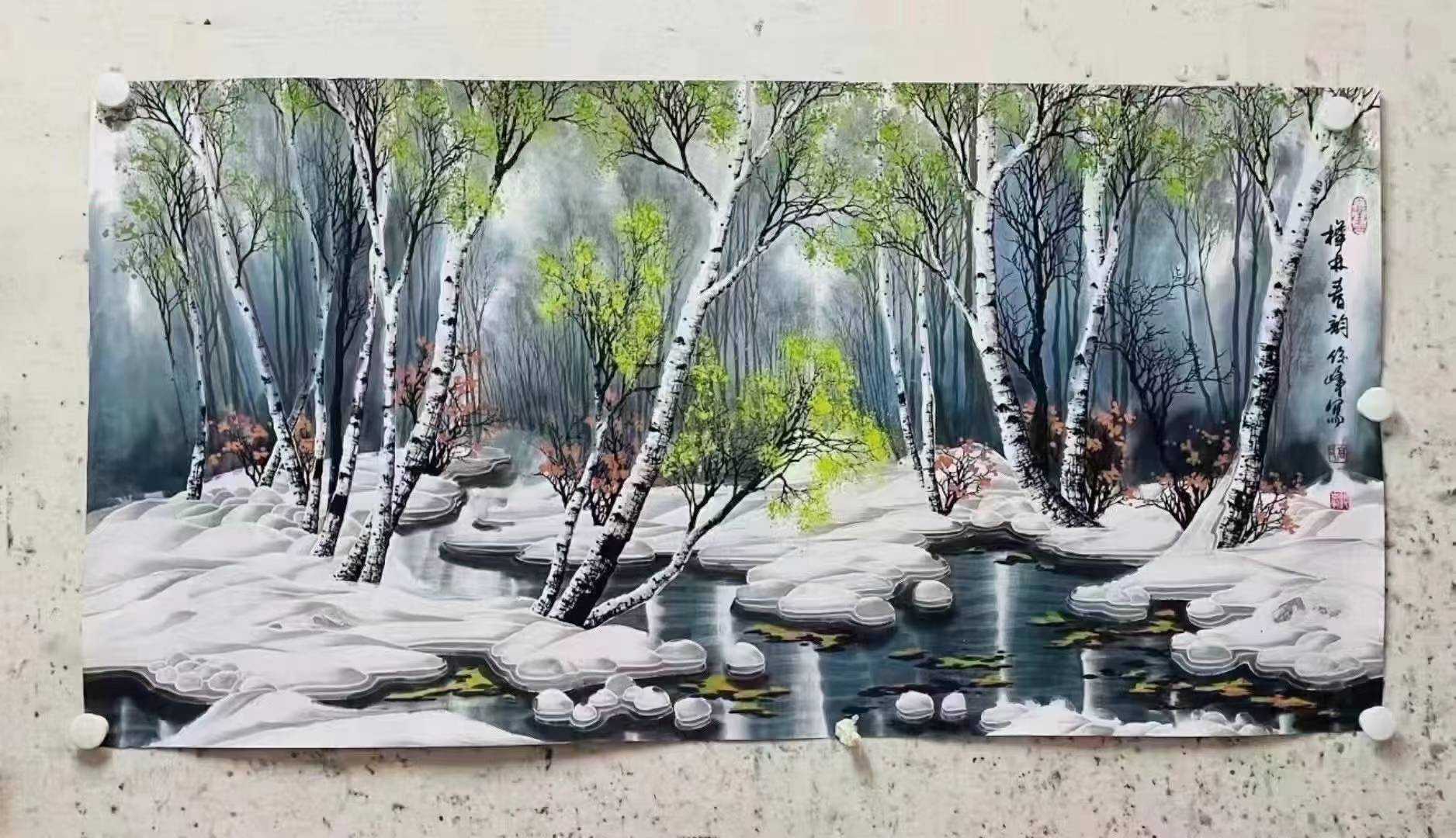 5.有自身原创、独立的绘画语言系统—冰雪画矾墨语言,这种语言以表现冰雪画为主体,可以拓展到表现水墨所能表现的一切物象。