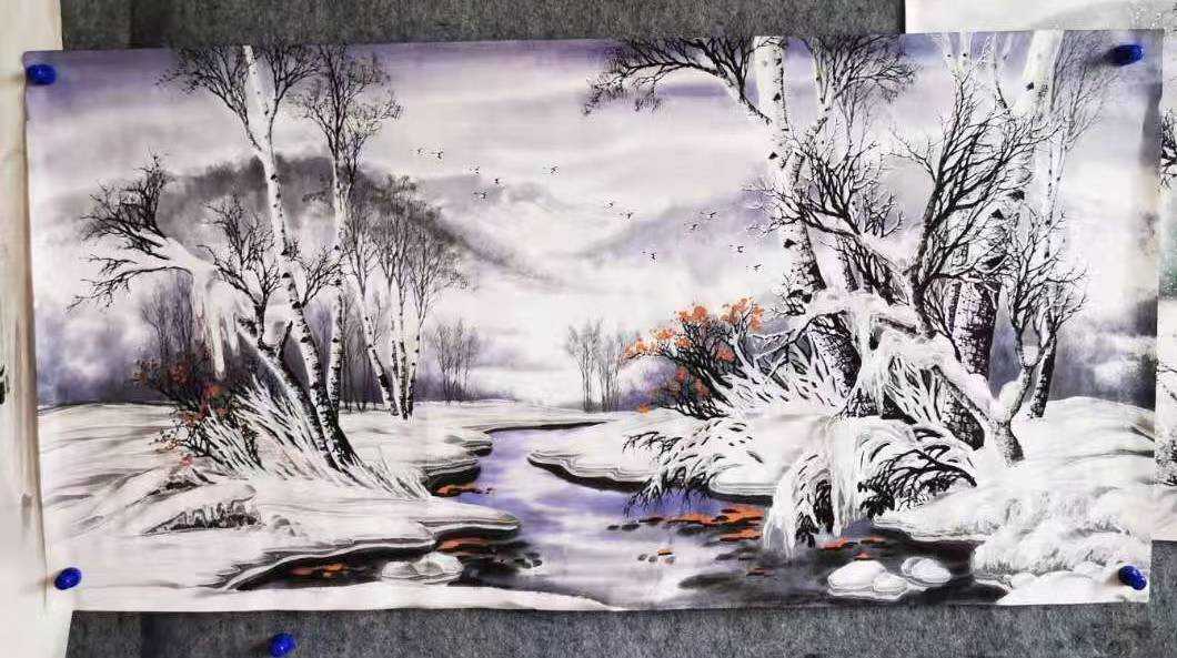 冰雪山水画填补了传统中国水墨画2300多年来不能直接画雪更不能画冰的空白!“冰雪画”填补了中国画白色体系的画法,发展了中国画的技法,具有划时代的意义,冰雪画代表作《北国风光》是引领冰雪画的开端,极具有收藏价值。