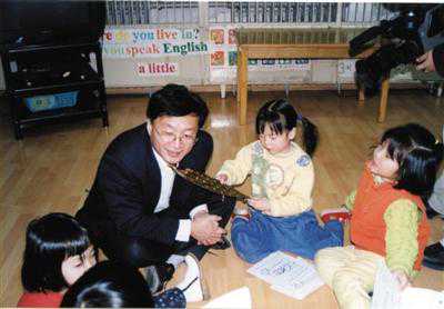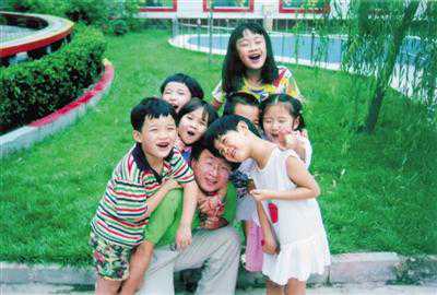 1998年程跃在小关幼儿园里和孩子们在一起。