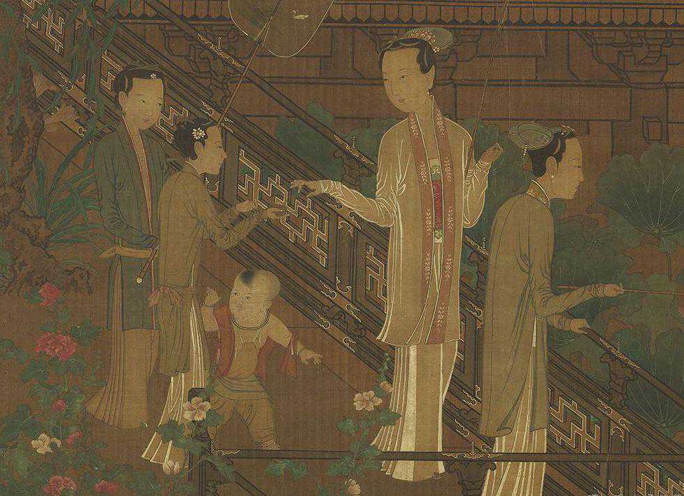 (传)五代南唐周文矩《仕女图》轴(局部)台北故宫博物院藏