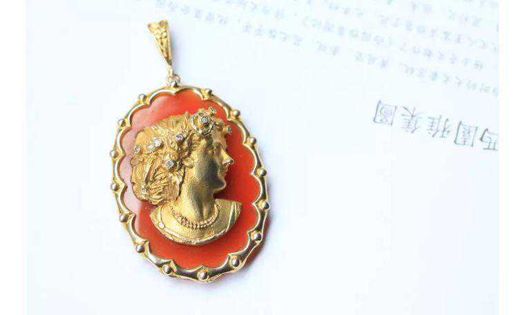 维多利亚回流老玛瑙镶嵌9k金钻石挂件