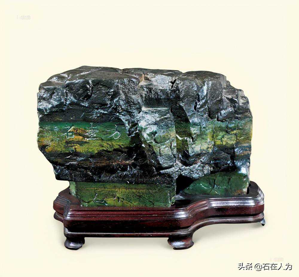 二美是结晶奇妙多趣绝大多数绿石为层状结晶,但有的排列均匀,有的厚薄悬殊,各层相间,色泽石质多不相同,浓淡交错,十分美丽。其断石变化曲折者,呈现出多种多样的曲线纹彩,别有风趣。有的结晶为丝状和柱状,丝丝相连;有的镶嵌于石隙;有的附着于石面,常可出现山峦纵横、千峰竞秀的奇观;有的石面上附着薄薄的石棉层,如遍山初雪,素雅大方;也有的在透明绿石中,间杂云母结晶,呈现出众多闪灼发光的金微粒,别有奇趣;还有的在个别石面上形成放射形结晶,出现奇峰高耸,岭脉向四面八方散射的奇景,为绿石中难得的珍品。