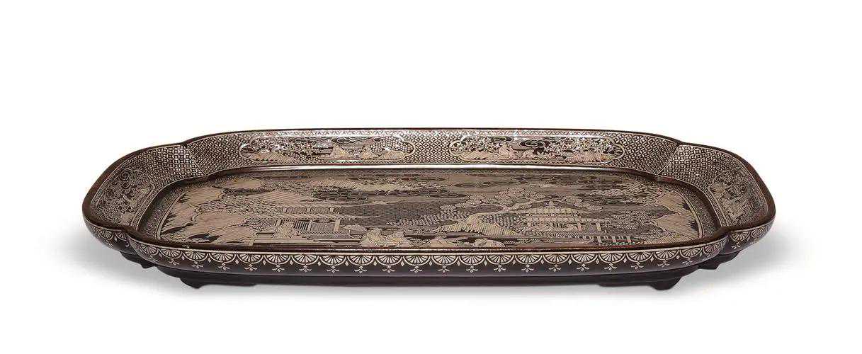香盘是放香炉、香插的盛盘,搬动香具时,就必须用香盘盛着。香盘多为木、金属、漆器等所制成,大小跟茶盘差不多,两者也可互用。