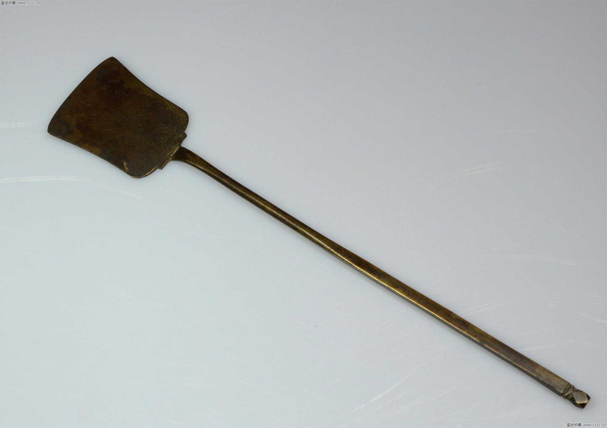 香铲是用来拨压香灰的,造型像一把与香筷相配的小铲子,故称之为“香铲”。香铲常常和香筷组成一套,多以金、银、铜等金属制作,也有竹、木材质的,但是要在顶端镶一个金属头。