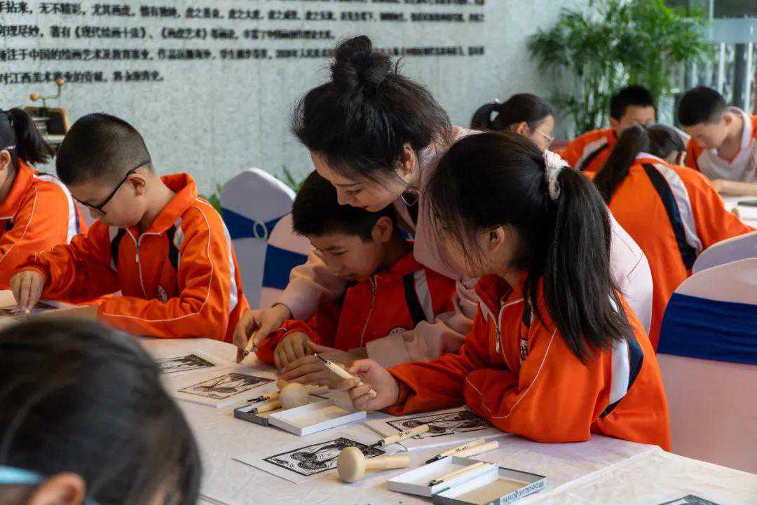 开幕式当天下午,来自南昌县洪州学校的同学们在公教老师的带领下进行版画印制体验活动,首先,同学们在老师的引领下对展览及艺术作品进行深刻解读,使大家了解到版画的历史脉络及宜春版画的发展路径,接下来,同学们通过版画印制的实践操作环节,更加加深了对版画的认识与了解,此次公教活动,同学们收益颇丰,也进一步的提高了大家的艺术审美素养和美育普及。