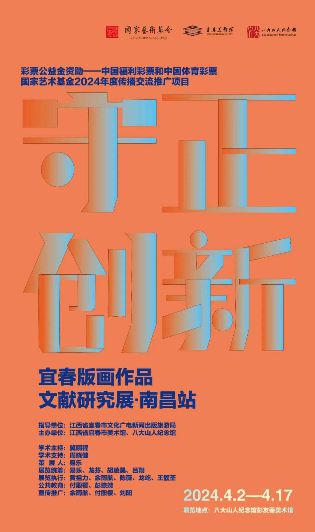 4月2日,国家艺术基金2024年度传播交流推广项目“守正·创新—宜春版画作品文献研究展”首展开展仪式及学术研讨会在南昌举办。本次展览项目由国家艺术基金、中国福利彩票和中国体育彩票资助,宜春市文化广电新闻出版旅游局指导,宜春市美术馆、八大山人纪念馆主办。