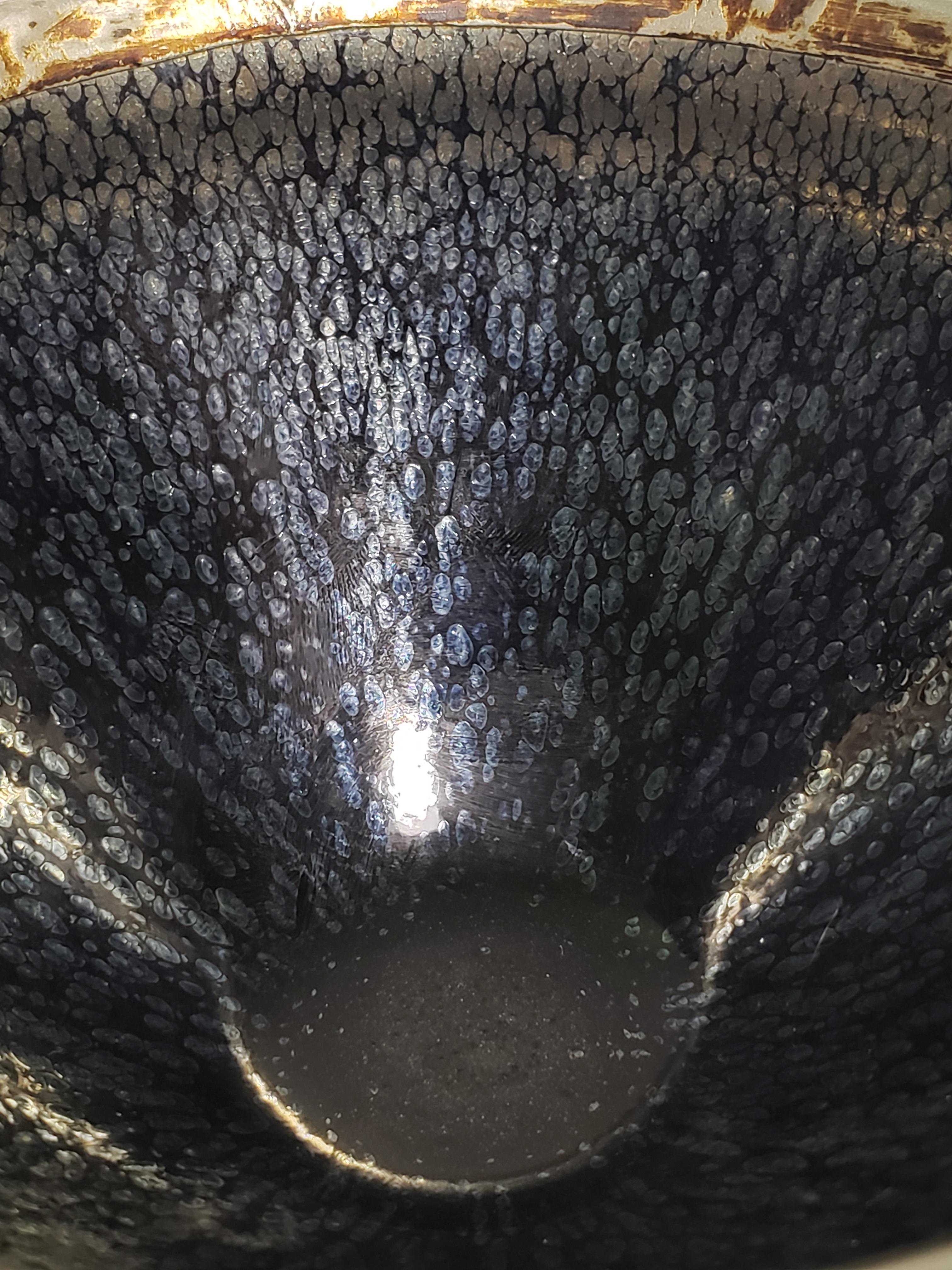 盏的外壁同样是银油滴遍布,并有许多凹陷的小坑