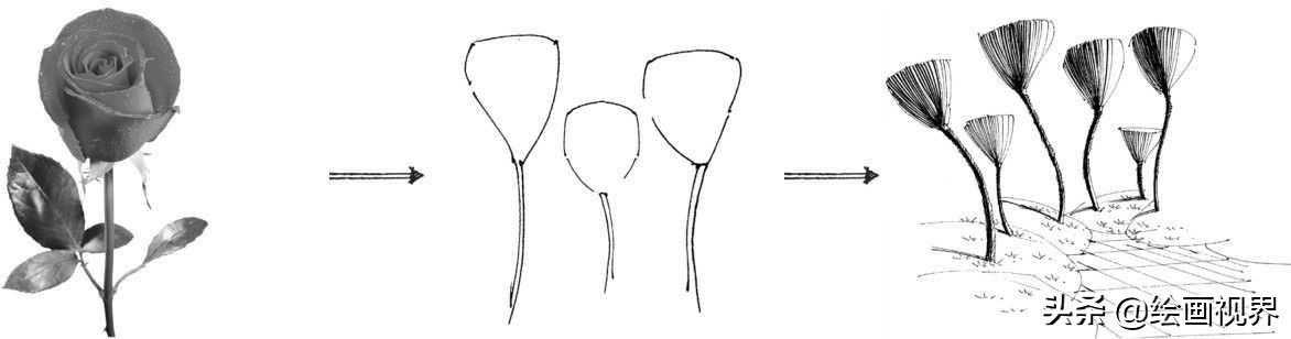 玫瑰花,对玫瑰花的造型抽象提取,景观绘画运用