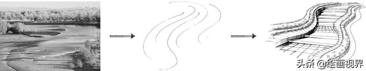 河流,对河流蜿蜒曲折的曲线抽象提取,景观绘画运用