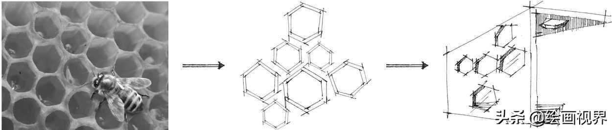 蜂窝孔,对窝孔造型的抽象提取,景观绘画运用