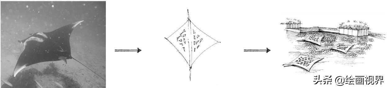 魔鬼鱼,对魔鬼鱼的造型抽象提取,景观绘画运用